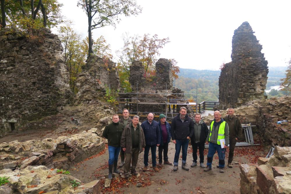 Kolejnym punktem spotkania była prezentacja dotycząca postępu prac konserwatorskich w ruinach zamku Sobień. Szczegółowe informacje przedstawił Patryk Zahacz z Nadleśnictwa Lesko, a uczestnicy mieli okazję osobiście obejrzeć prowadzone prace.
