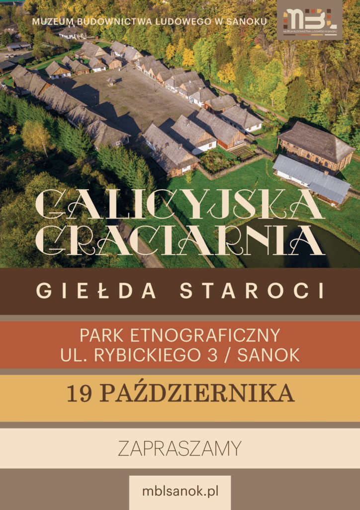 Już 19 października (niedziela) Muzeum Budownictwa Ludowego w Sanoku zaprasza mieszkańców i turystów na wyjątkowe wydarzenie – Dziedzictwo 2.0 – Festiwal Kultury Ludowej w Erze Cyfrowej. Na uczestników czeka dzień pełen muzyki, warsztatów, pokazów oraz regionalnych smaków. Na galicyjskim rynku odbędzie się także ostatnia w tym roku giełda staroci