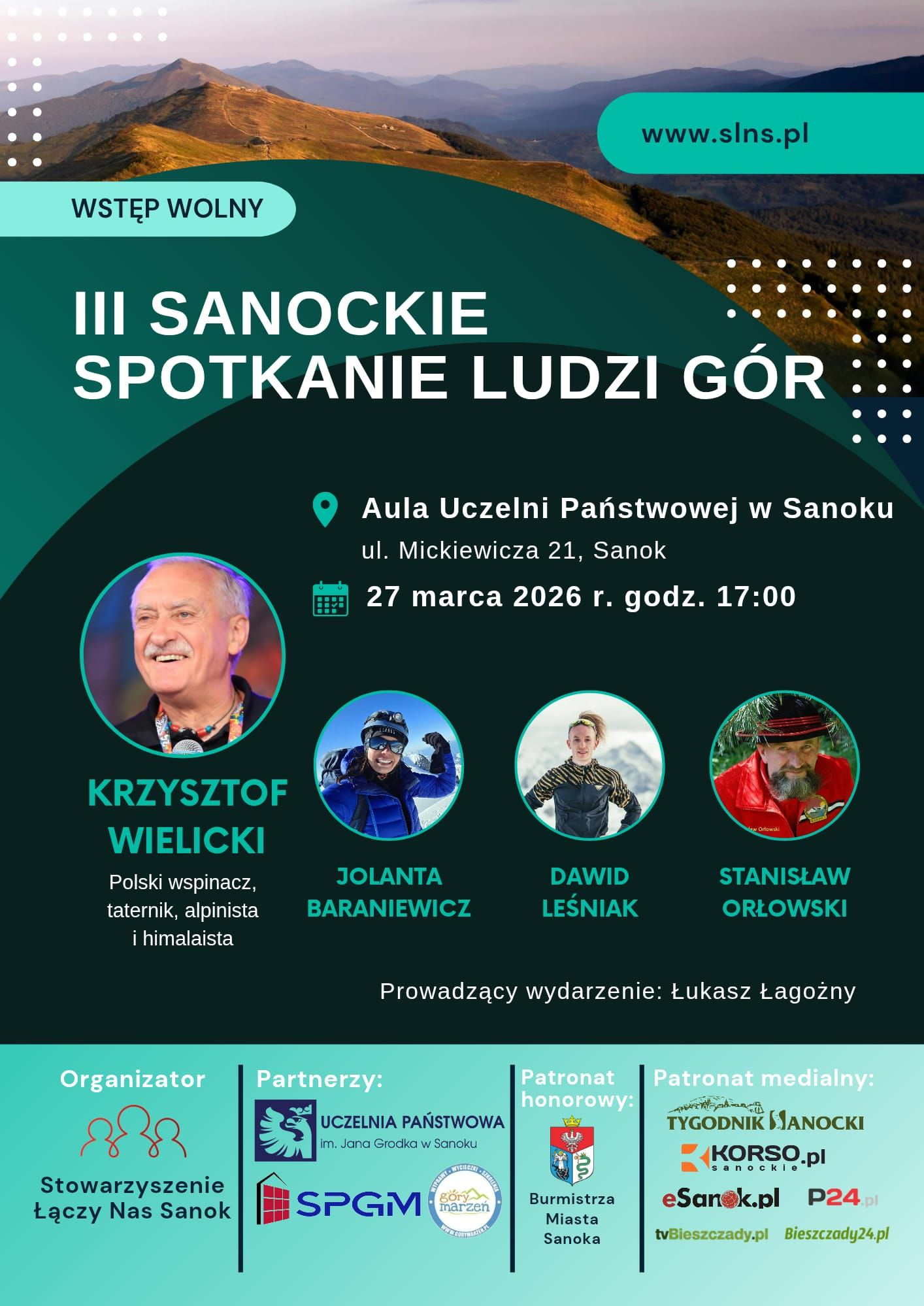 W piątek 27 marca 2026 roku w Sanoku odbędzie się III Sanockie Spotkanie Ludzi Gór – wydarzenie dla miłośników gór, podróży i aktywnego stylu życia. Gościem specjalnym będzie legenda polskiego himalaizmu Krzysztof Wielicki.