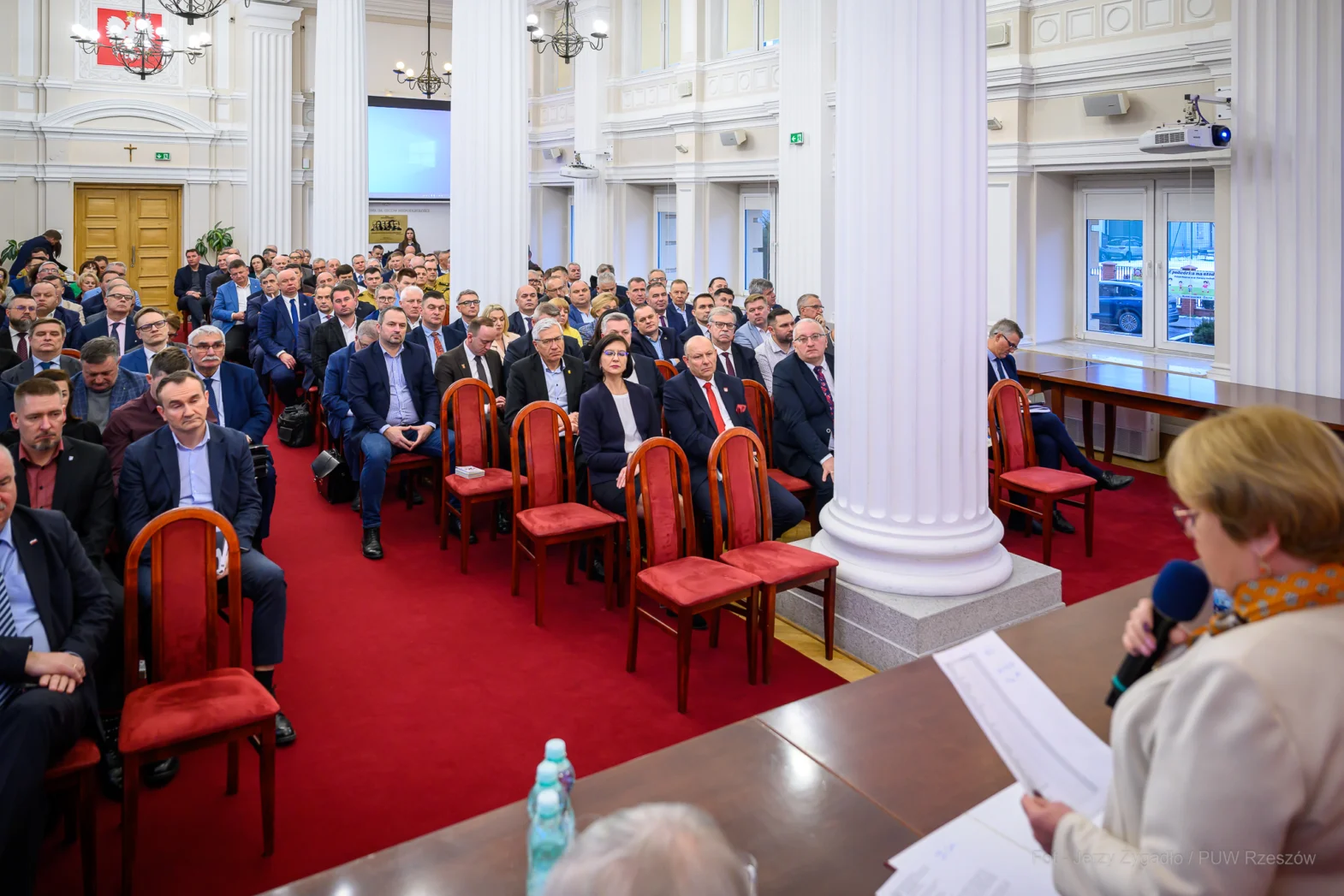 Po konferencji prasowej w Sali Kolumnowej Podkarpackiego Urzędu Wojewódzkiego w Rzeszowie odbyło się spotkanie z samorządowcami oraz przedstawicielami Państwowej Straży Pożarnej. Podczas rozmów podsumowano realizację programu w 2025 roku i omówiono plany na nadchodzący rok.