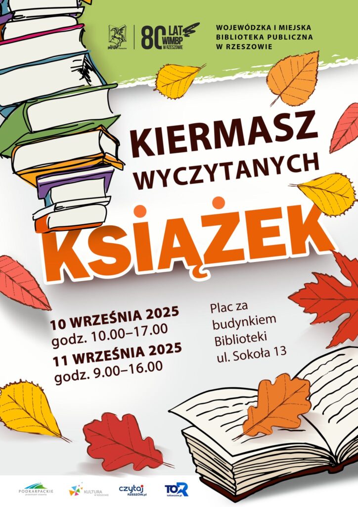 Wojewódzka i Miejska Biblioteka Publiczna w Rzeszowie zaprasza na Kiermasz Wyczytanych Książek, który odbędzie się 10 września w godz. 10:00-17:00 oraz 11 września w godz. 9:00-16:00. Wydarzenie będzie miało miejsce na placu za siedzibą WiMBP przy ul. Sokoła 13.