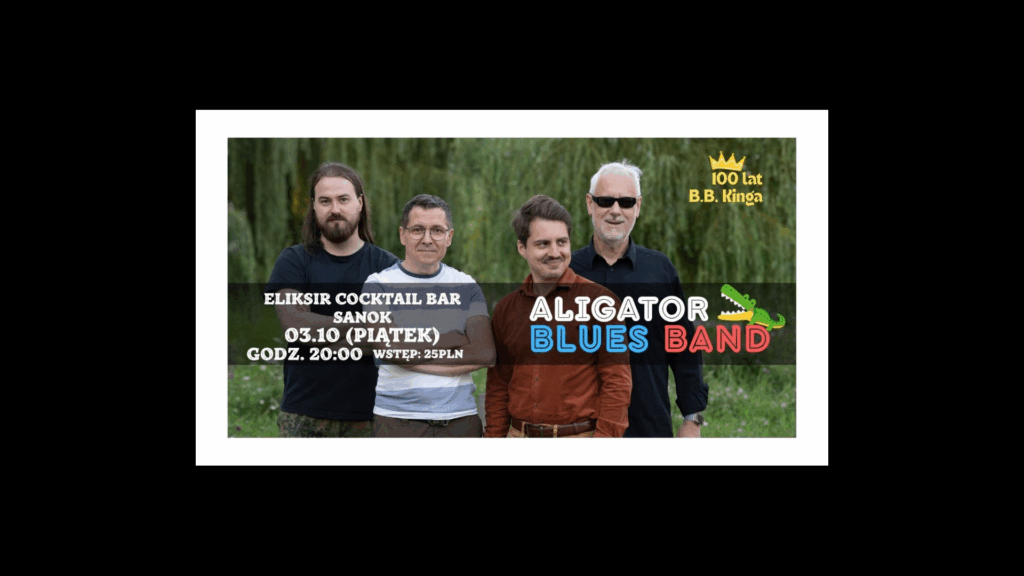 Weekend otworzy Aligator Blues Band w Eliksir Cocktail Bar w Sanoku. Koncert odbędzie się z okazji 100. rocznicy urodzin B.B. Kinga – Króla Bluesa. W repertuarze znajdą się standardy muzyki amerykańskiej lat 60. i 70., pełne improwizacji i energii.