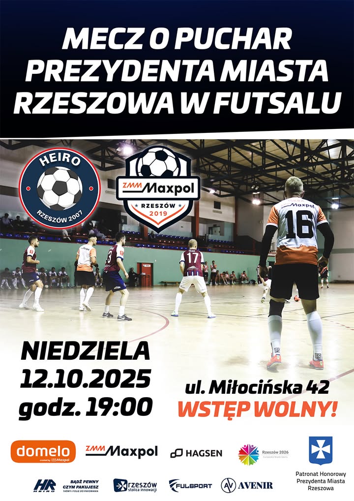 Rzeszów rozpoczyna sezon futsalowy meczem o Puchar Prezydenta Miasta. Heiro i ZMM Maxpol zmierzą się w sportowym starciu, które zapowiada gorący początek sezonu.