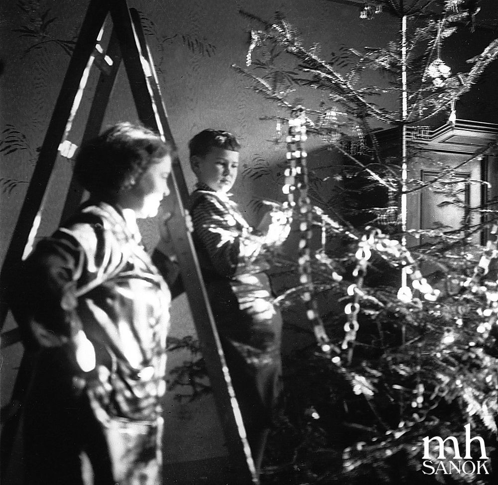 Zdzisio Beksiński z mamą Stanisławą Beksińską podczas ubierania choinki w domu rodzinnym w Sanoku