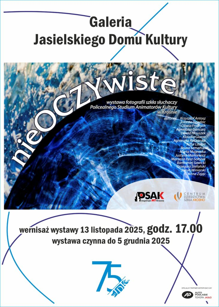 Już 13 listopada (czwartek) 2025 roku o godz. 17.00 w Sali Offowej Galerii Jasielskiego Domu Kultury odbędzie się wernisaż wystawy fotografii szkła „nieOCZYwiste”. To efekt pracy słuchaczy kierunku Animatorzy Fotografii z Policealnego Studium Animatorów Kultury w Krośnie, którzy udowadniają, że nawet najzwyklejsze przedmioty mogą zaskakiwać swoją formą i światłem.