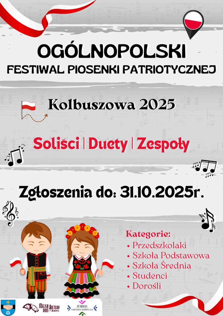 Do 31 października można przesyłać zgłoszenia do Ogólnopolskiego Festiwalu Piosenki Patriotycznej, który odbędzie się w Miejskim Domu Kultury w Kolbuszowej. Wydarzenie ma na celu popularyzację polskiej muzyki patriotycznej i odkrywanie młodych talentów wokalnych z całego kraju.