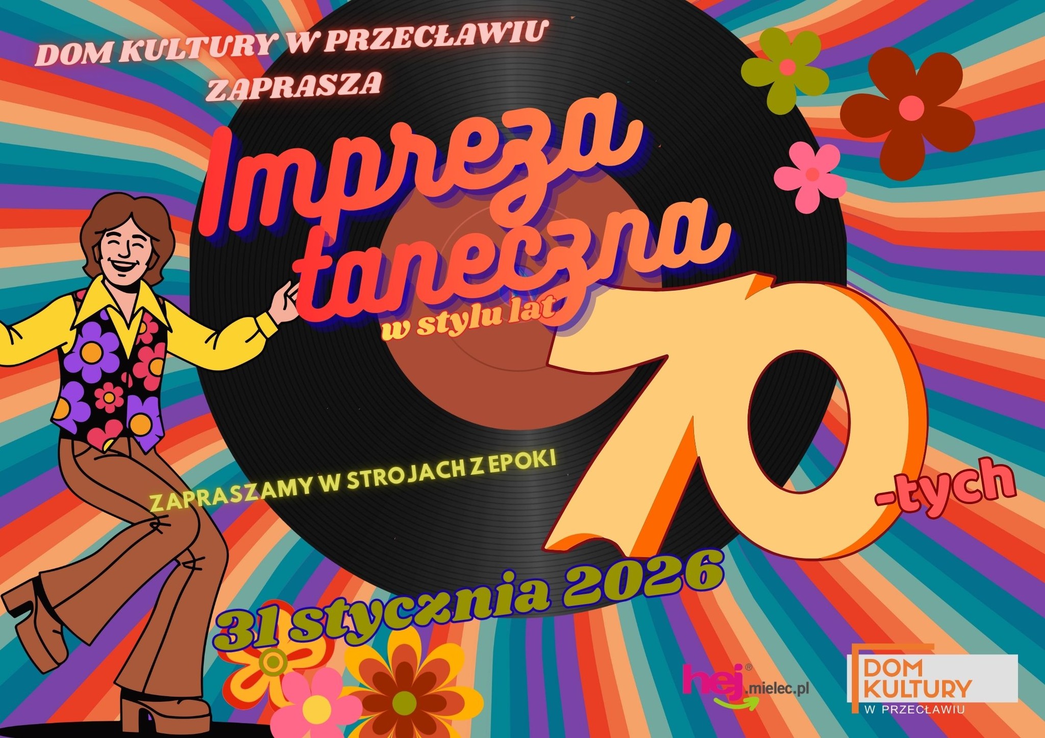 Już 31 stycznia Dom Kultury w Przecławiu zamieni się w roztańczony parkiet rodem z lat 70. Organizatorzy zapraszają na imprezę disco pełną kolorów, hitów i tanecznej energii.