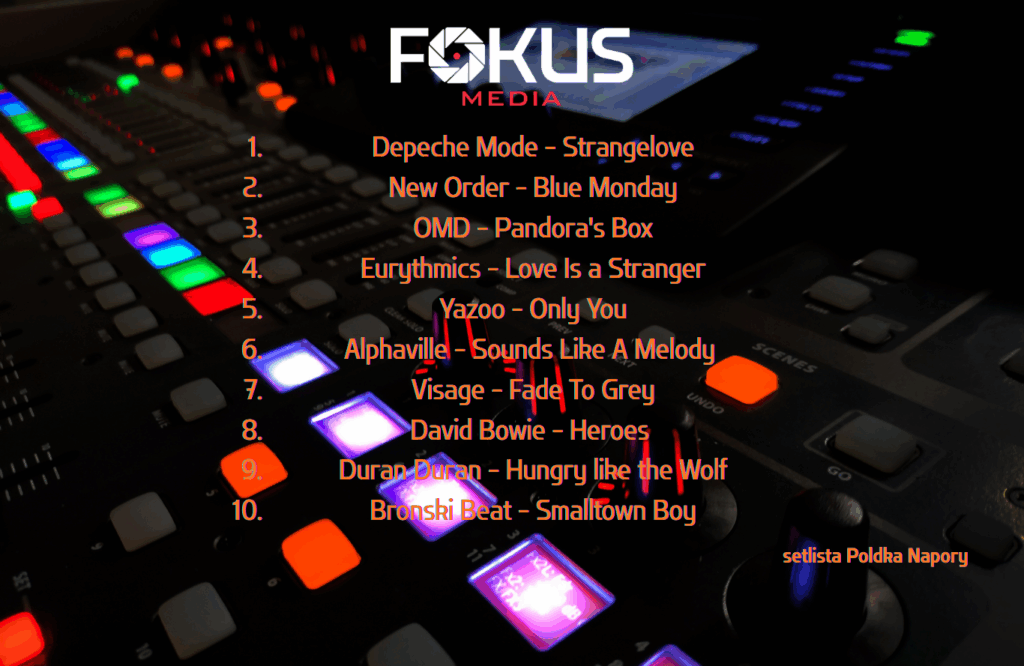 DJ Preston zadba o to, aby klimat lat 80. był na najwyższym poziomie. Na liście znajdą się zarówno ikony New Romantic – jak Duran Duran, czy Visage, jak i pionierzy elektroniki z Kraftwerk . Nie zabraknie Soft Cell z ich nieśmiertelnym Tainted Love, melancholii OMD czy parkietowych hymnów New Order na czele z legendarnym Blue Monday.