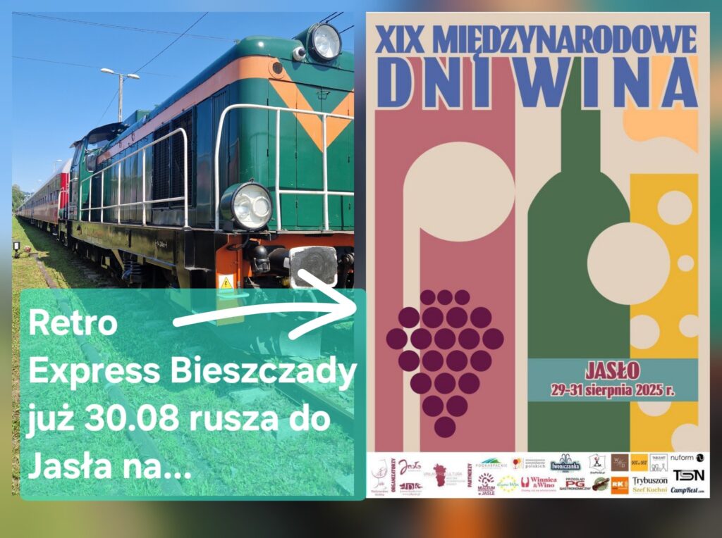 Już 30 sierpnia miłośnicy kolei, klimatu retro i bieszczadzkich krajobrazów znów będą mieli okazję przeżyć wyjątkową podróż. Na kolejowej mapie Retro Expressu pojawił się nowy kierunek. Tym razem pociąg zabierze pasażerów w malowniczą trasę aż do Jasła, gdzie czekają atrakcyjne wydarzenia związane z Międzynarodowymi Dniami Wina.