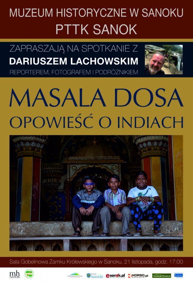 Muzeum Historyczne w Sanoku wraz z PTTK zapraszają na wyjątkowe spotkanie z Dariuszem Lachowskim -podróżnikiem, fotografem i reporterem, który 21 listopada o godz. 17.00 w Sali Gobelinowej sanockiego zamku zabierze uczestników w niezwykłą opowieść o Indiach. To wydarzenie to doskonała okazja, by odkryć kulturę pełną kontrastów i zrozumieć, jak jeden posiłek potrafi opowiedzieć historię całego kraju.