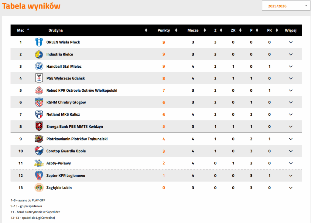 Aktualna tabela sezonu 2025/2026 (stan na 25.09.2025)