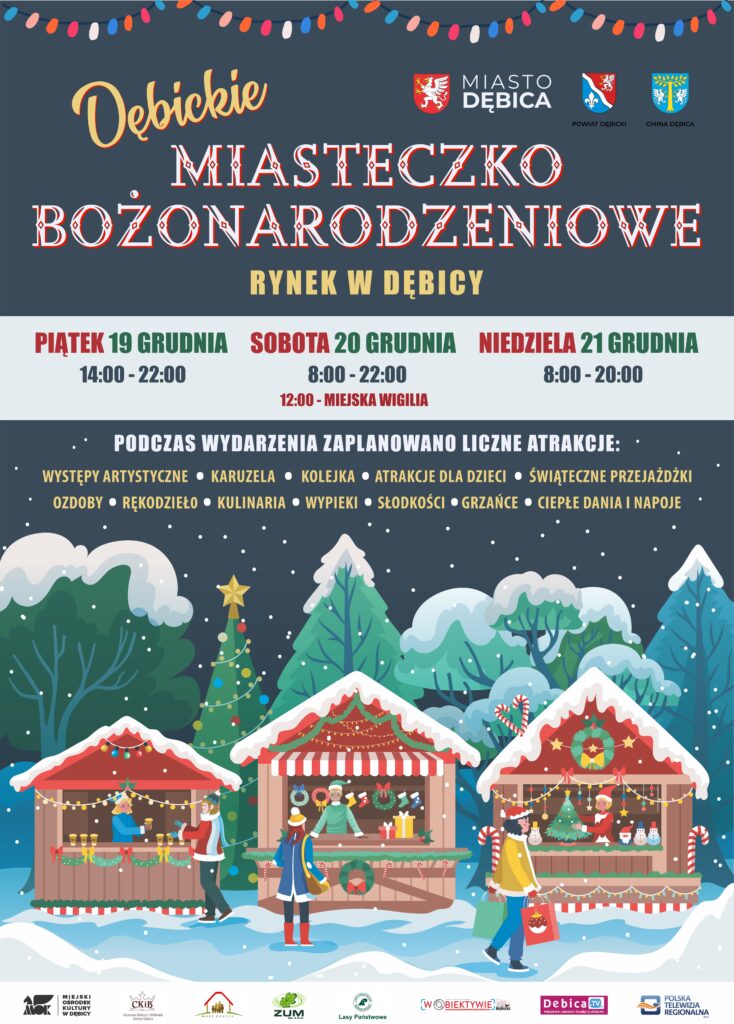 Przygotuj się na magiczne święta w Dębickim Miasteczku! Wiele stoisk, koncerty, atrakcje dla dzieci i tradycyjna Wigilia już od 19 grudnia.