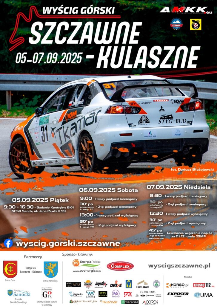 Już w pierwszy weekend września 2025 roku Bieszczady staną się motoryzacyjnym centrum Polski! Na malowniczej trasie pomiędzy Szczawnem a Kulasznem (wojewódzka droga nr 892) odbędzie się finał sezonu Górskich Samochodowych Mistrzostw Polski (GSMP). To właśnie tutaj rozstrzygną się losy tytułu mistrzowskiego – zarówno w klasyfikacji generalnej, jak i w walce o miejsce na podium.