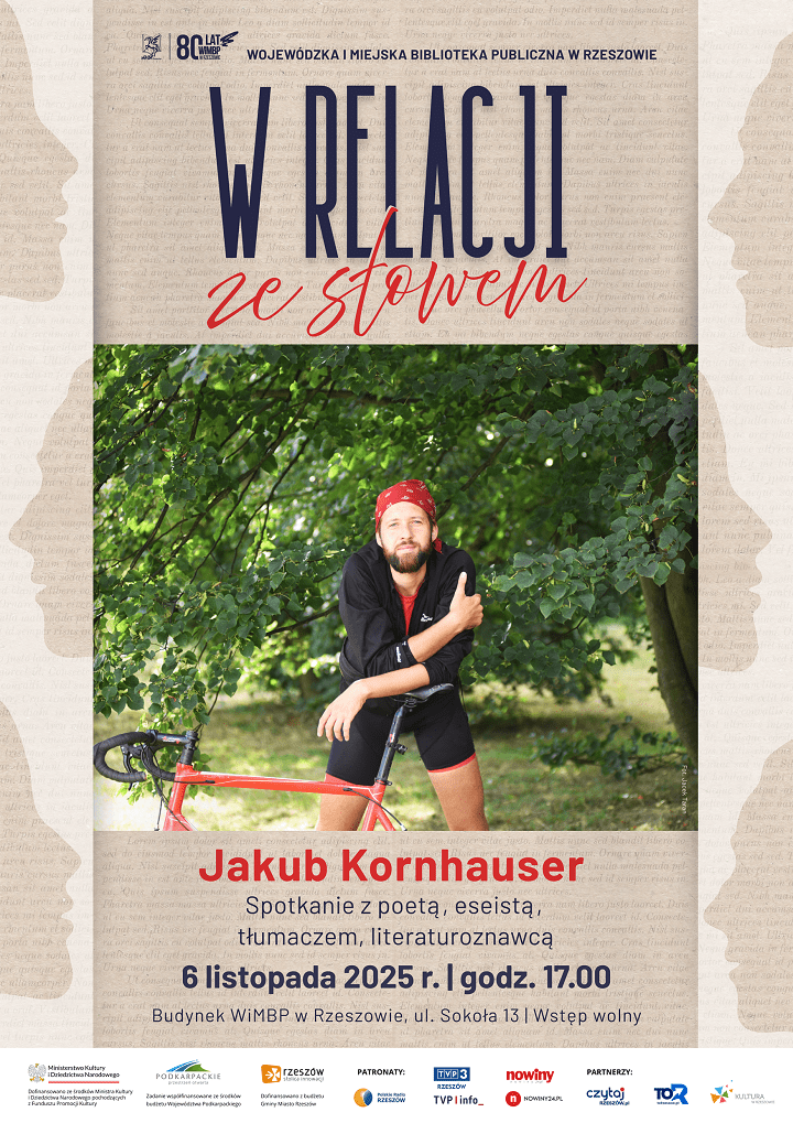 W czwartek 6 listopada miłośnicy poezji i mikro-wypraw będą mieli okazję spotkać Jakuba Kornhausera – poetę, eseistę, tłumacza i rowerowego entuzjastę. Spotkanie rozpocznie się o godzinie 17:00, również w budynku głównym biblioteki przy ul. Sokoła 13. Będzie to wyjątkowa szansa, by sprawdzić, jak wygląda twórczość napędzana ruchem i eksploracją.