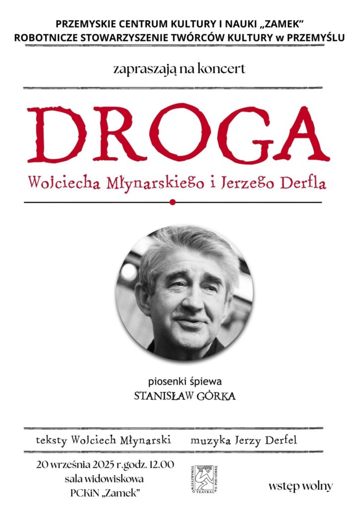 Robotnicze Stowarzyszenie Twórców Kultury w Przemyślu oraz Przemyskie Centrum Kultury i Nauki ZAMEK zapraszają na wyjątkowy koncert, podczas którego zabrzmią utwory Wojciecha Młynarskiego i Jerzego Derfla.